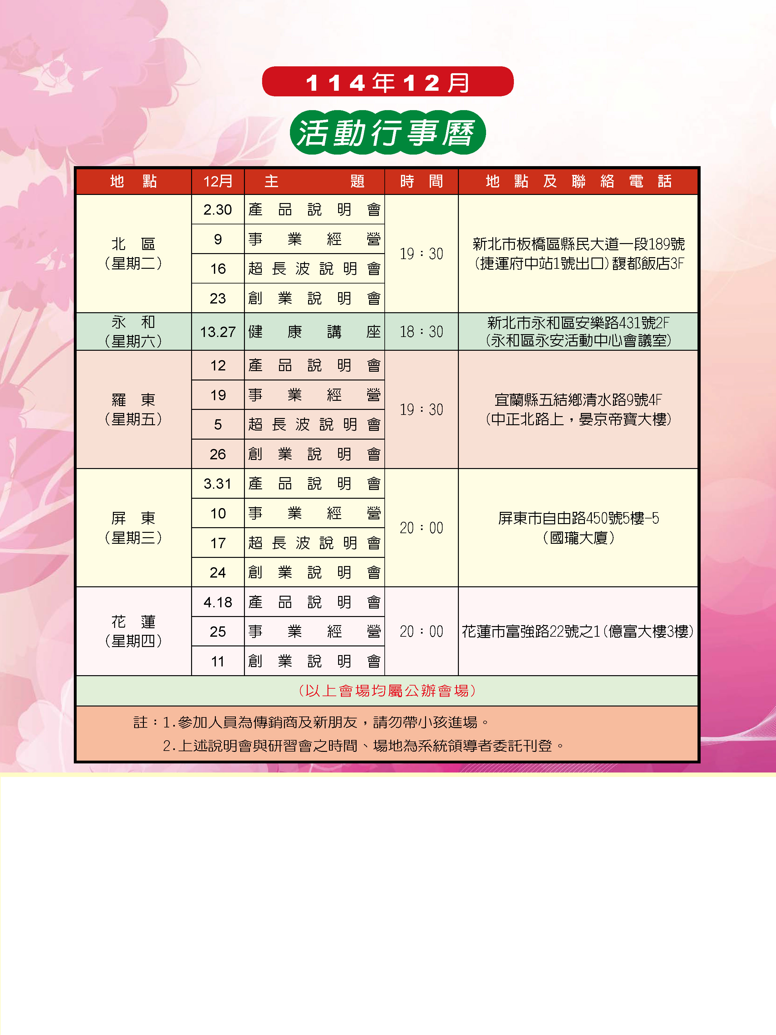 12月份活動行事曆