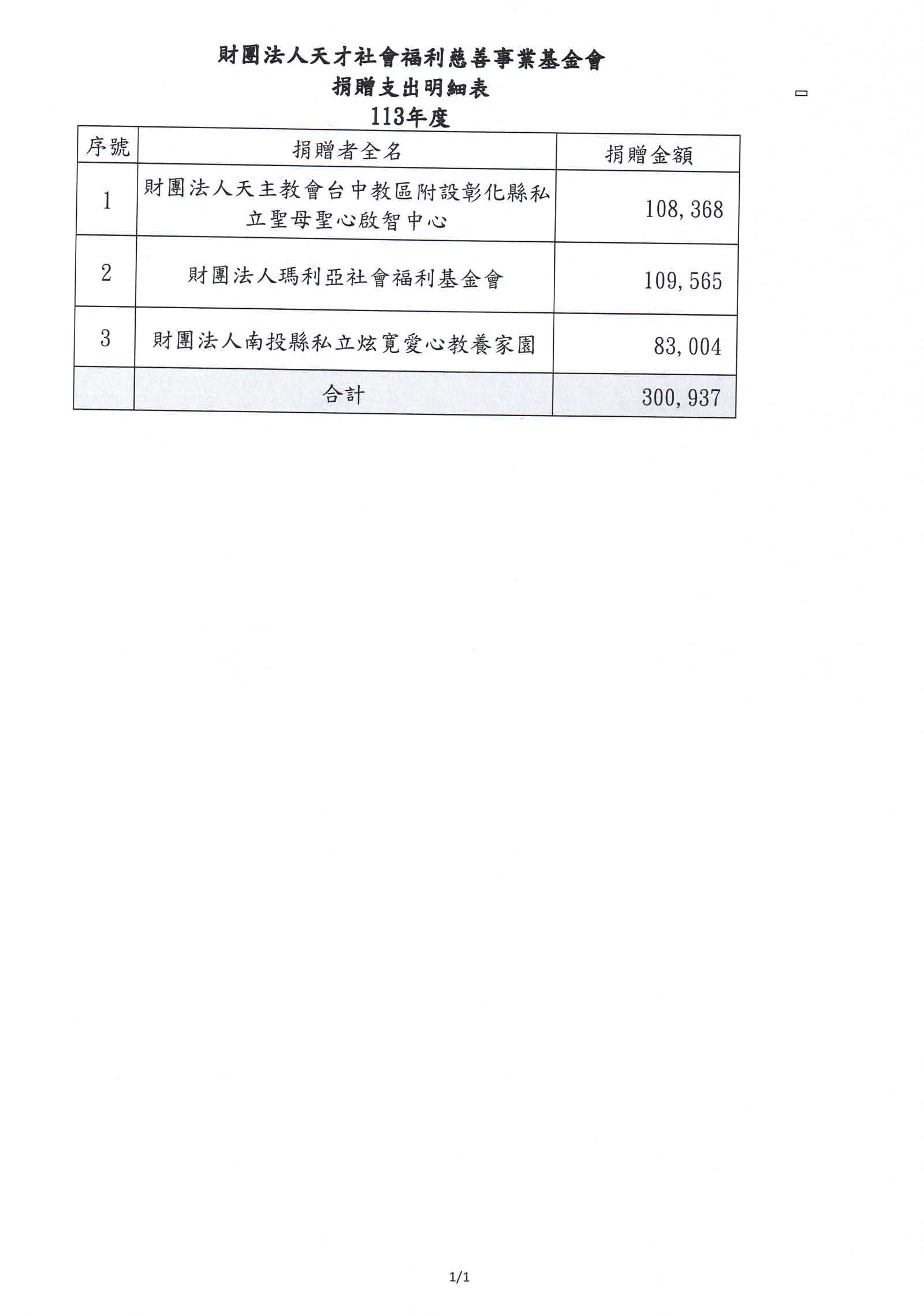 113年天才基金慈善捐助
